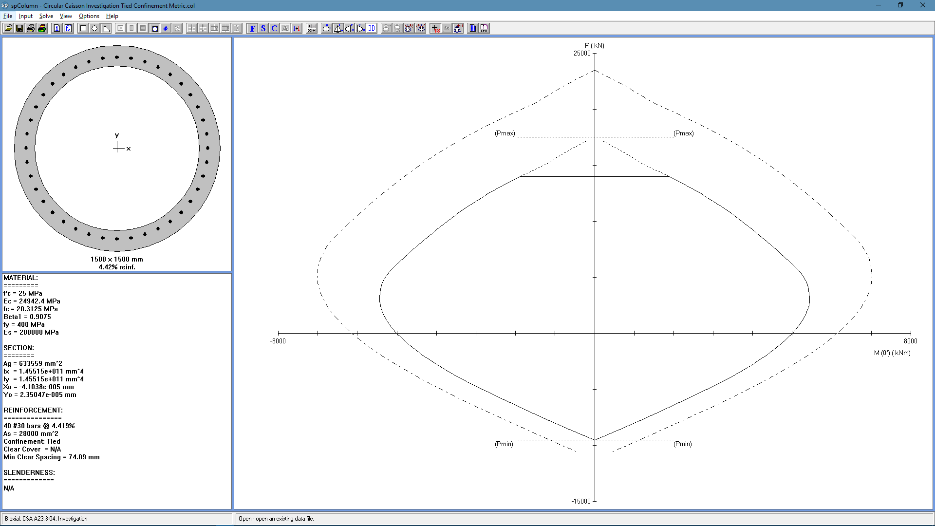 Circular-Caisson-Investigation-Tied-Confinement-Metric Interaction Diagram